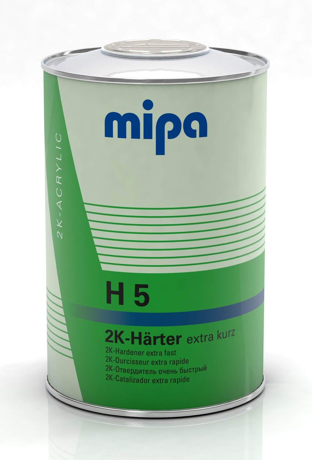 Mipa 2K hardener H 5 extra short is a hardener made for use with the compatible coating system. Available volume options include 250 ml, 1 l, 5 l.