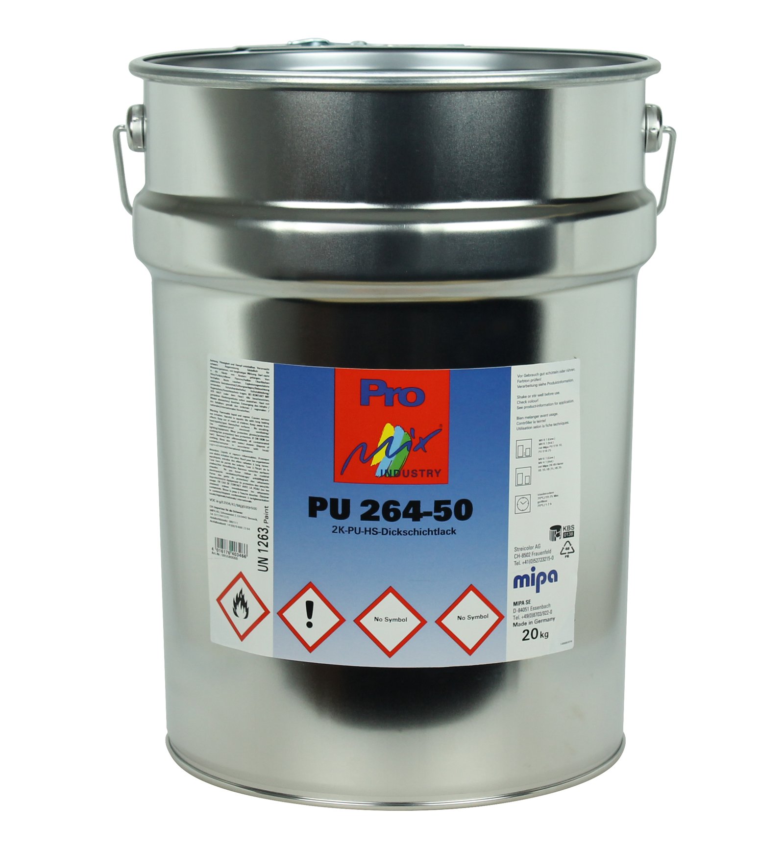 Prepare the substrate thoroughly and remove grease, dust and loose contamination before coating. Mix the product in the stated ratio (8:1 by weight; 6:1 by volume) with Mipa PU 916-10, PU 916-25; adjust with Mipa 2K-Thinner if required. Apply even coats and respect the flash-off, drying and recoating times of the full system. From + 10 °C and up to 80 % relative humidity. Ensure adequate air ventilation