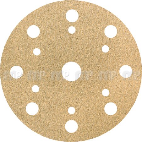 MP grinding disc “Gold Plus” 150 mm 15-hole hook and loop P 100 (Mipa) is an Abrasive in 150 mm for surface preparation, shaping and sanding between coating steps.